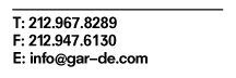 T: 212.967.8826 F: 212.695.5328 E: info@gar-de.com