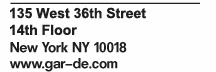 135 west 36th street 5th floor, New York, NY 10018, www.gar-de.com
